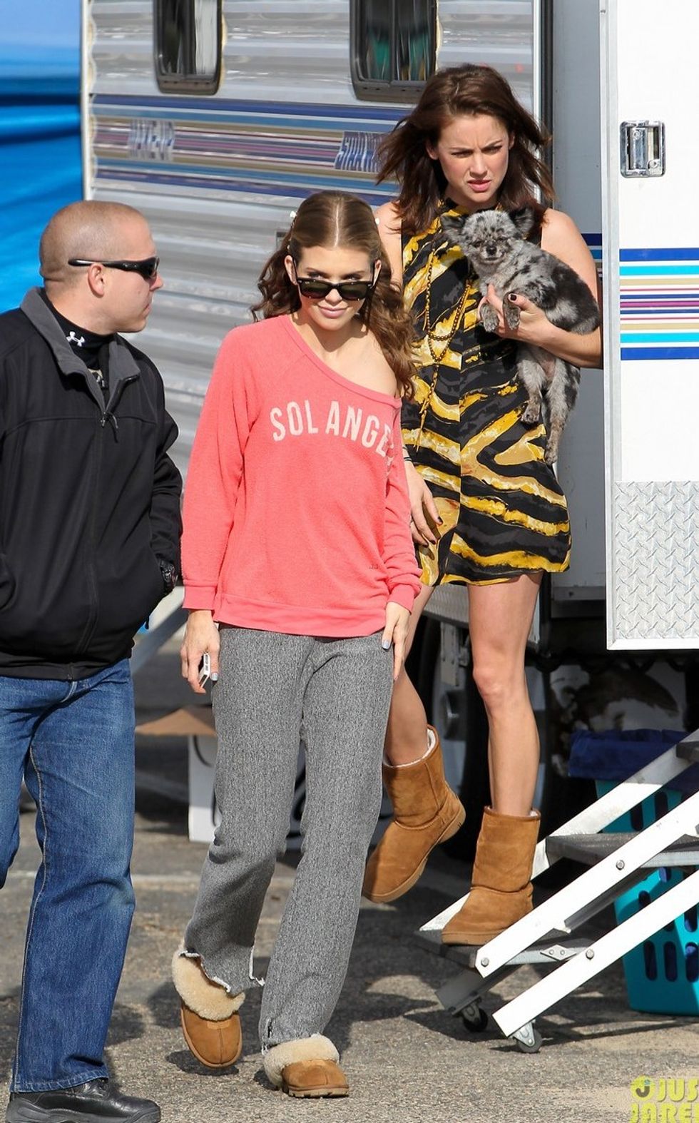 Ugg moccasins and slippers are the most comfortable footwear you can own. Warning: they're only acceptable during finals week, at the dining hall, at the lib after 9 p.m. or walking out of your trailer on a movie set as pictured above (or just walking out of your trailer).