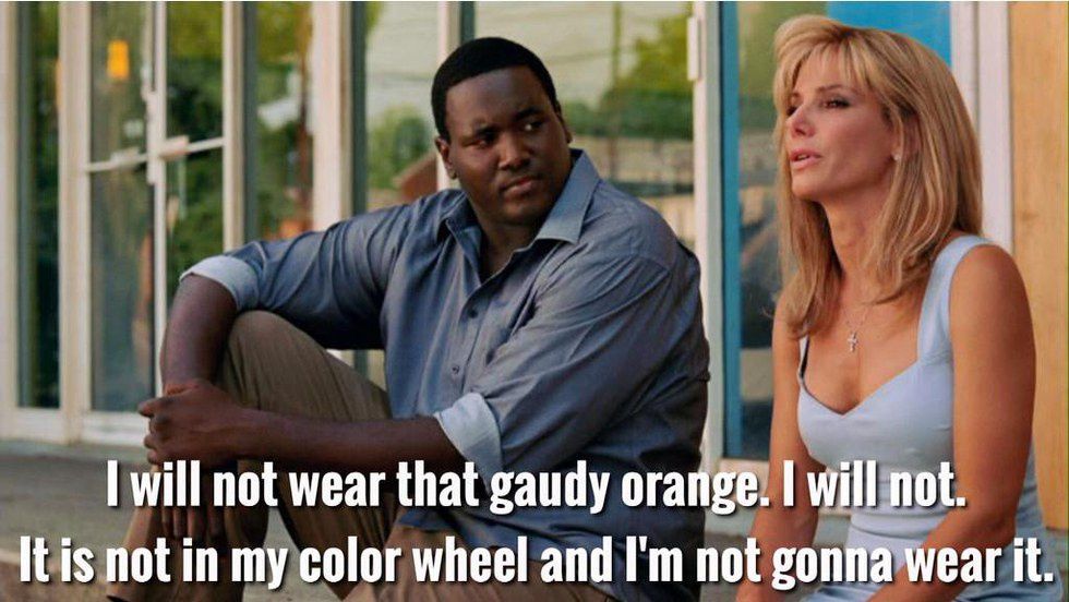 yeah... I'd be making that face too if I had to wear that gaudy orange