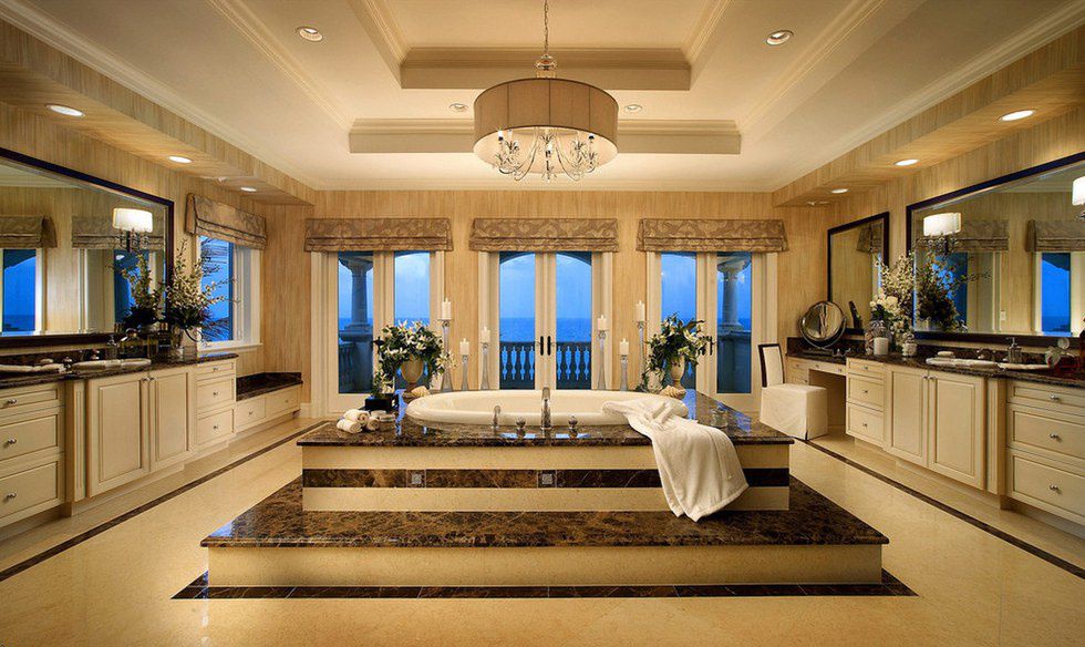 Having a spacious bathroom is key. With enough room for each person to get ready this is an awe-inspiring design for a master bathroom.