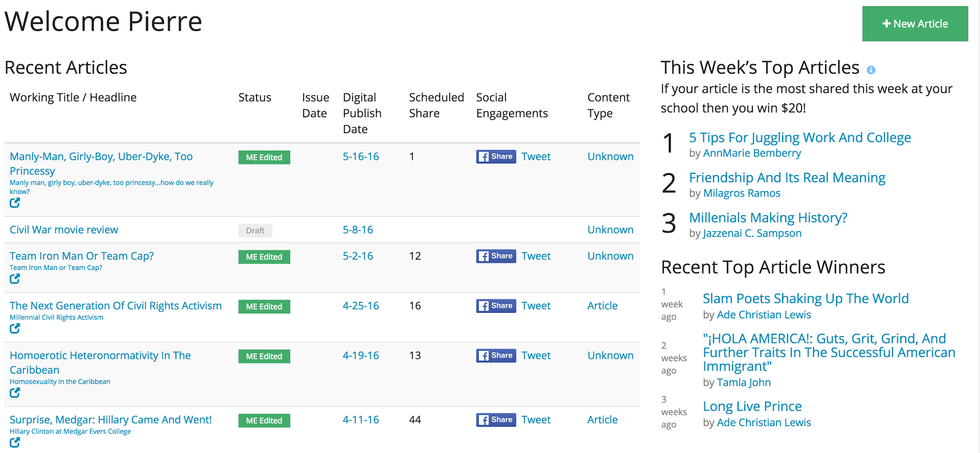 After you click on “+New Article,” you will be able to begin creating your piece of content.