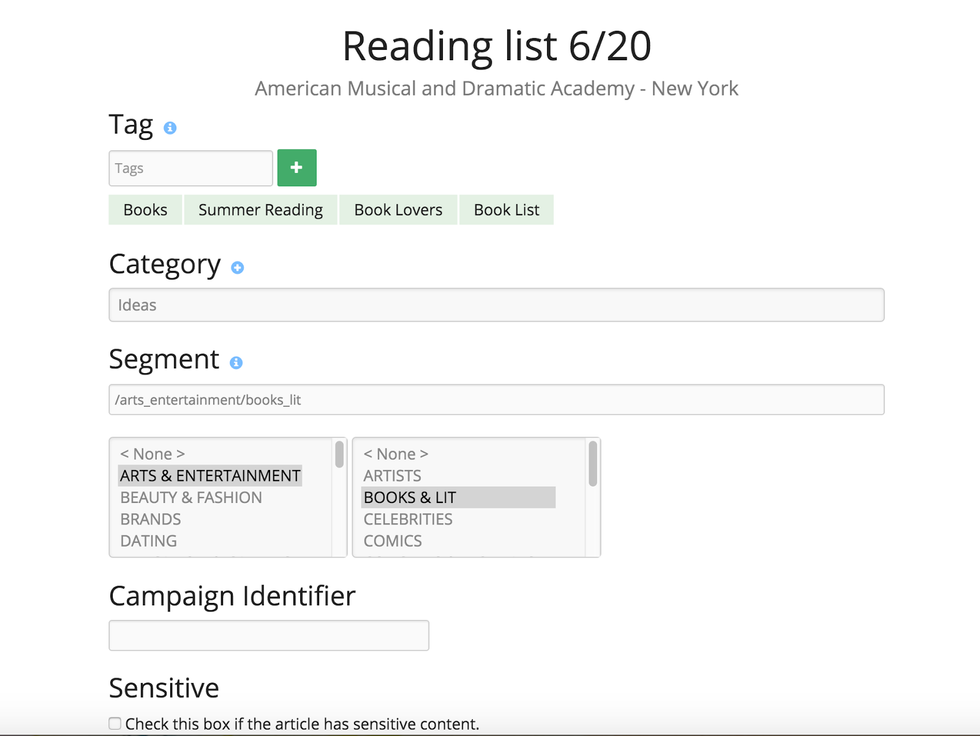 - This is something that is only we can see internally. We recommend putting a description of what the piece is as well as when it should go live. For example: Donald Trump Article 2/15. (This way it is easy to keep track of in the system.)