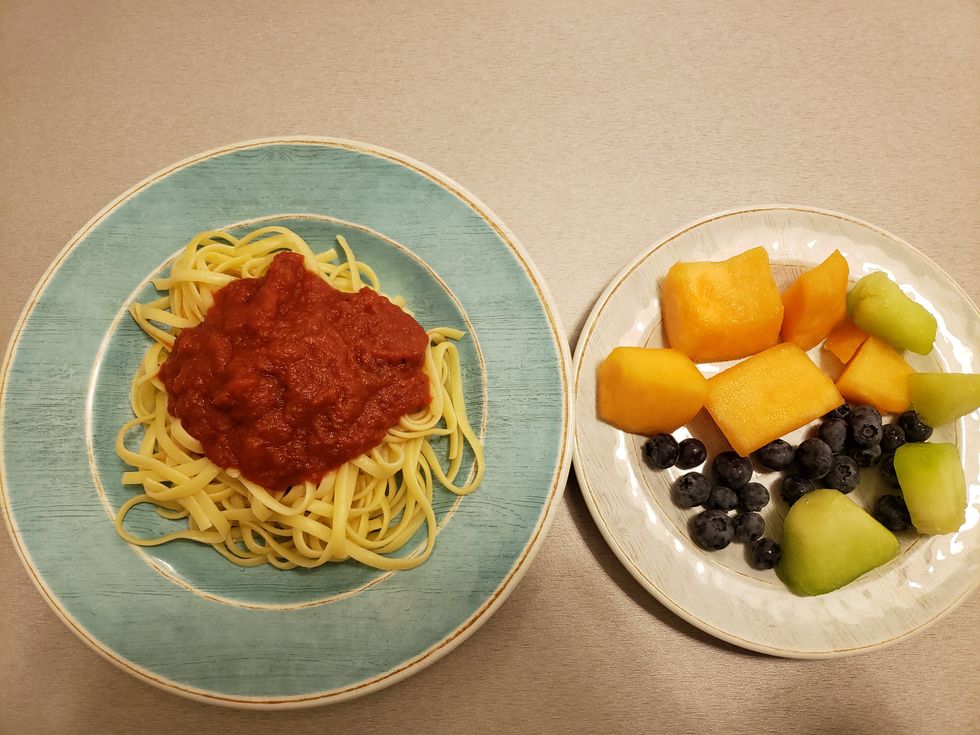 Admittedly, you really don't get variety on some days. This particular night at LAR, the salads were only pre-made (as opposed to a salad bar) and had cheese in them! Spaghetti with marinara sauce and fruit were the only vegan options in the entire dining hall. I won't be going back to LAR anytime soon, unless it's for Field of Greens, but it has very specific hours.
