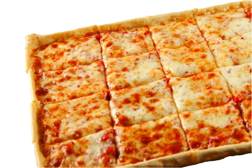 This pizza is very sweet. I'm not a fan of the thin crust, and often times I see people dabbing off the grease from the pizza. The pizza is okay, but you won't hear me raving about it. I think the square slice approach is interesting though.