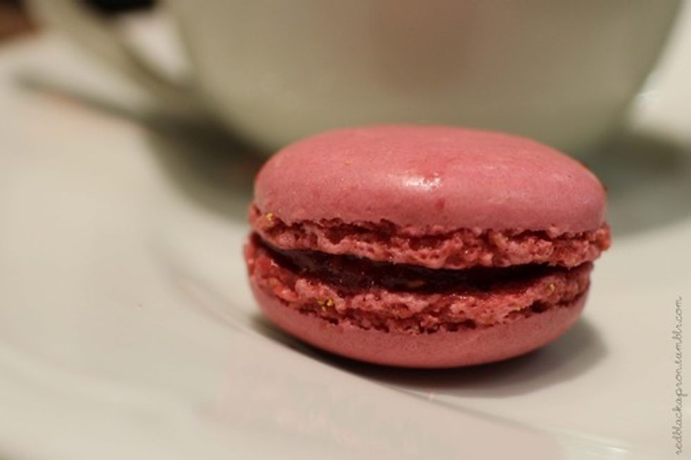 I don't know why anyone thought it would be a good idea to substitute a creamy filling for jam, but it was done with the raspberry macaron. It is one of the simplest tasting and easiest macarons to make and not very fun to eat. It is essentially just the basic flavors with red food coloring and seedless raspberry jam as the filling. It was very overrated and tasted too much like jam than an actual macaron cookie. I would definitely not recommend it.