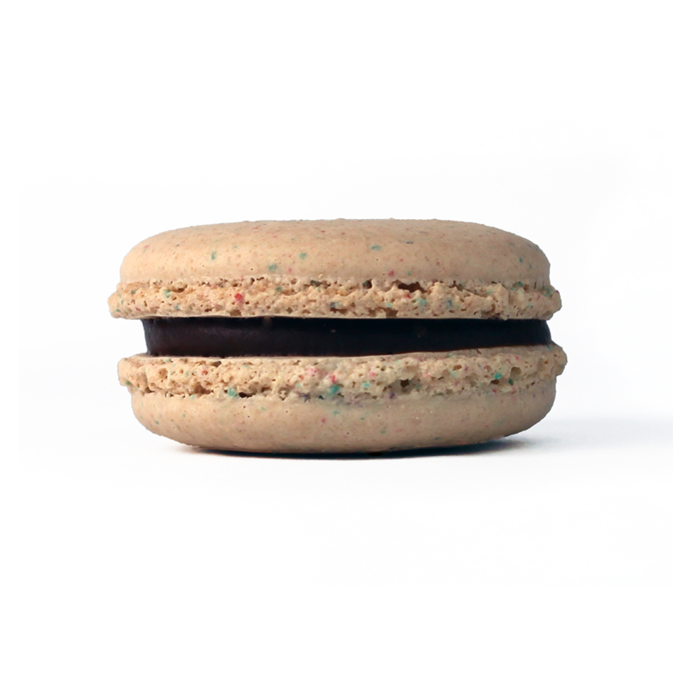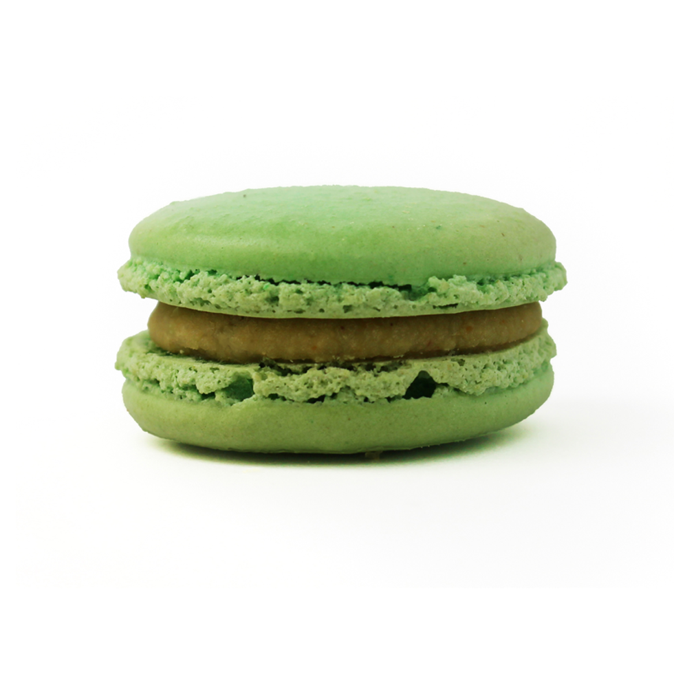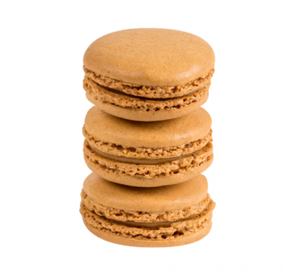 Toffee is composed of almond flavors and a toffee buttercream filling. It is creamy, delicious, sweeter and more complex than the classic caramel macaron. The hints of almond and hazelnut make it a sophisticated and delightful blend of flavors. The butterscotch, creamy filling make it especially mouthwatering and pulls it all together into a number one, must-have macaron. It's tasteful and will satisfy any sweet tooth or hankering for the perfect macaron.