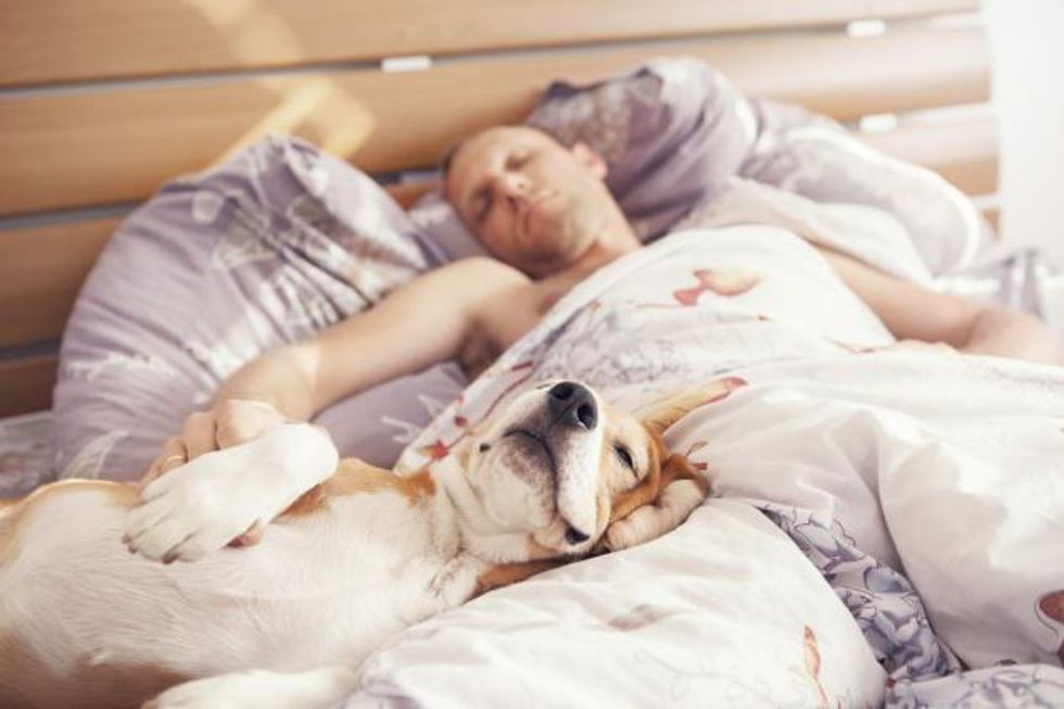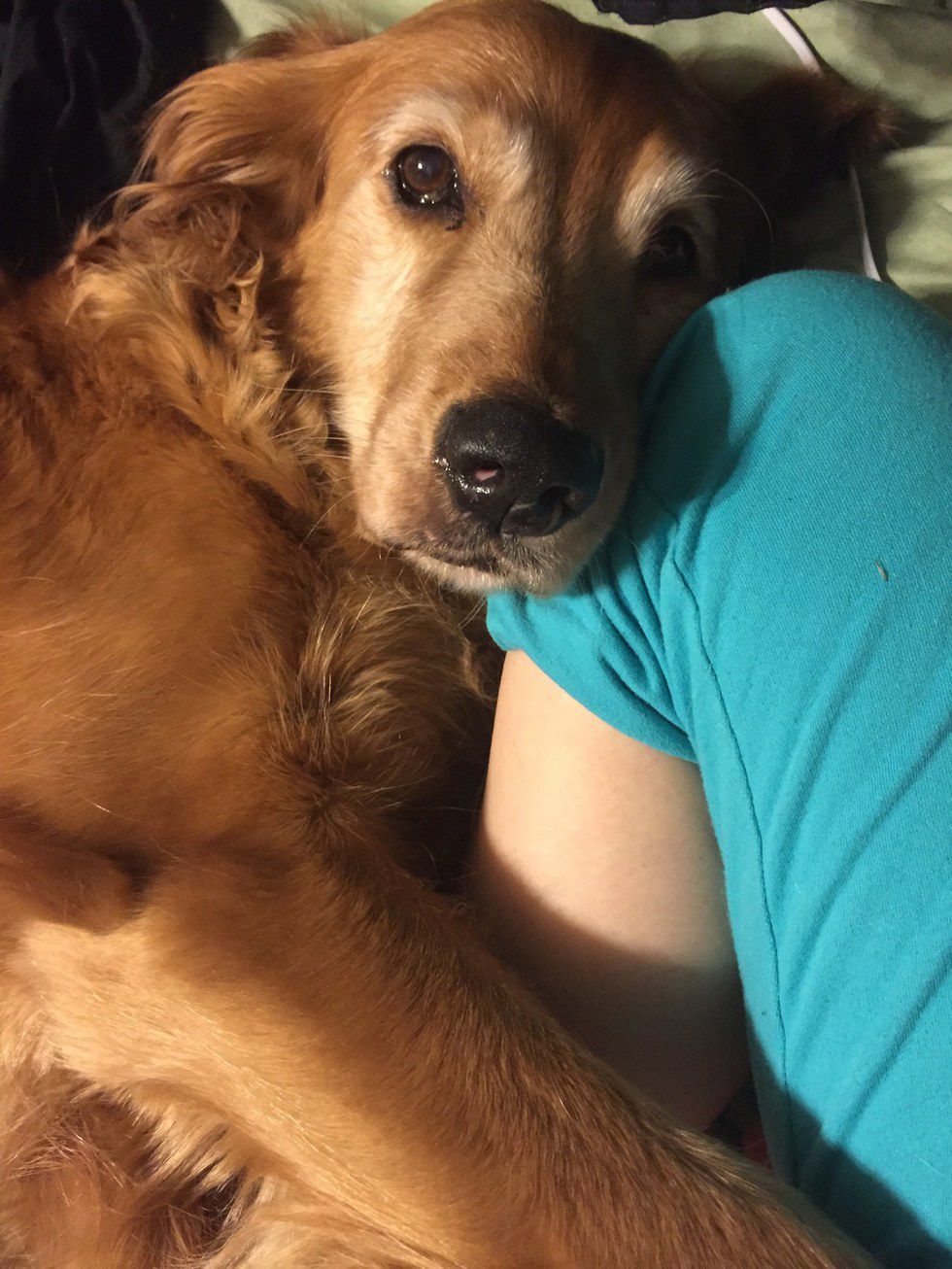 Some people think you shouldn't let your dog sleep in bed with you and that they should have their own bed. But, if your pup is wanting to snuggle up to you at night, this is a sign that they want to be with the "pack." Now, when I am in my bed, Delilah is always up there with me, and most of the time, her big butt is stretched out, forcing me to sleep in the tiniest of balls on barely any bed. Yet, when I'm in my mom's bed Delilah always tries to beg to get on the bed with me but, sadly I can't allow her to join me cause mom's bed is a no-dog zone.