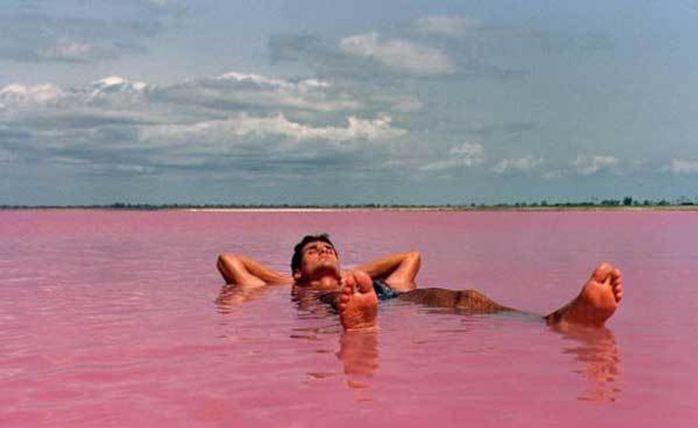 This lake is also called Lac Rose because of it's pink hue. The lake gives off this color due to cyanobacteria, a harmless halophilic bacteria found in the water. Lake Retba also has a high salt content, allowing people to float effortlessly in the massive pink water.