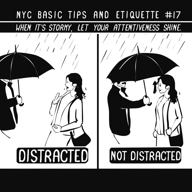 Umbrella etiquette can save lives. Well... Maybe not literally, but it can prevent unwarranted stab wounds.