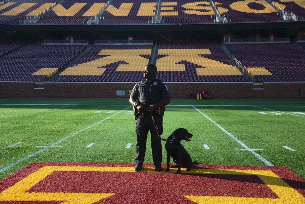 Gator's specialty will be sniffing for bombs and other explosives before events hosted on campus by the University of Minnesota. He will also be the go-to man for tracking missing items and people from events. He went through rigorous training to qualify for this important job. Once Gator arrived, the two newfound friends spent every weekday from 9 a.m. to 6 p.m. learning how to work together to effectively handle a variety of potential scenarios they might encounter on the job.