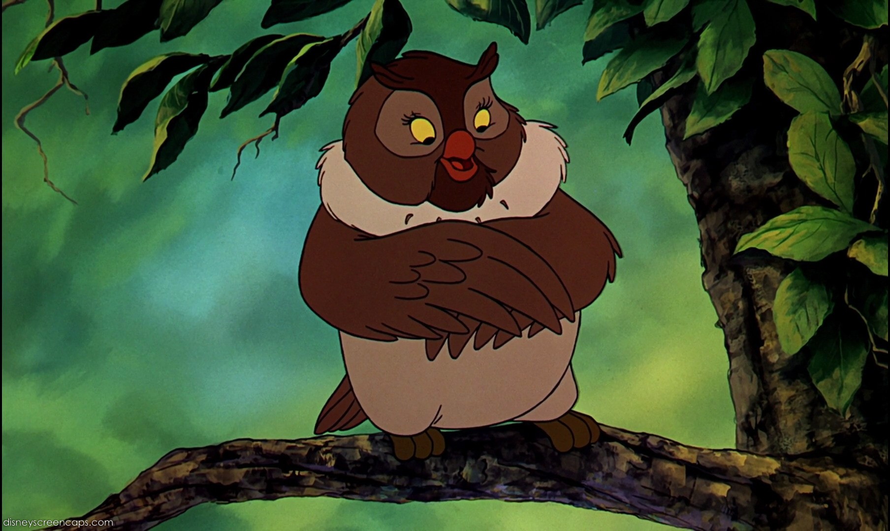 After Widow Tweed sends Tod back to the forest, Big Mama still watches out for him and sets him up with a female fox. Owls are depicted as being wise and all-knowing, and Big Mama is no exception, using her skills to educate Tod so he won’t get eliminated.