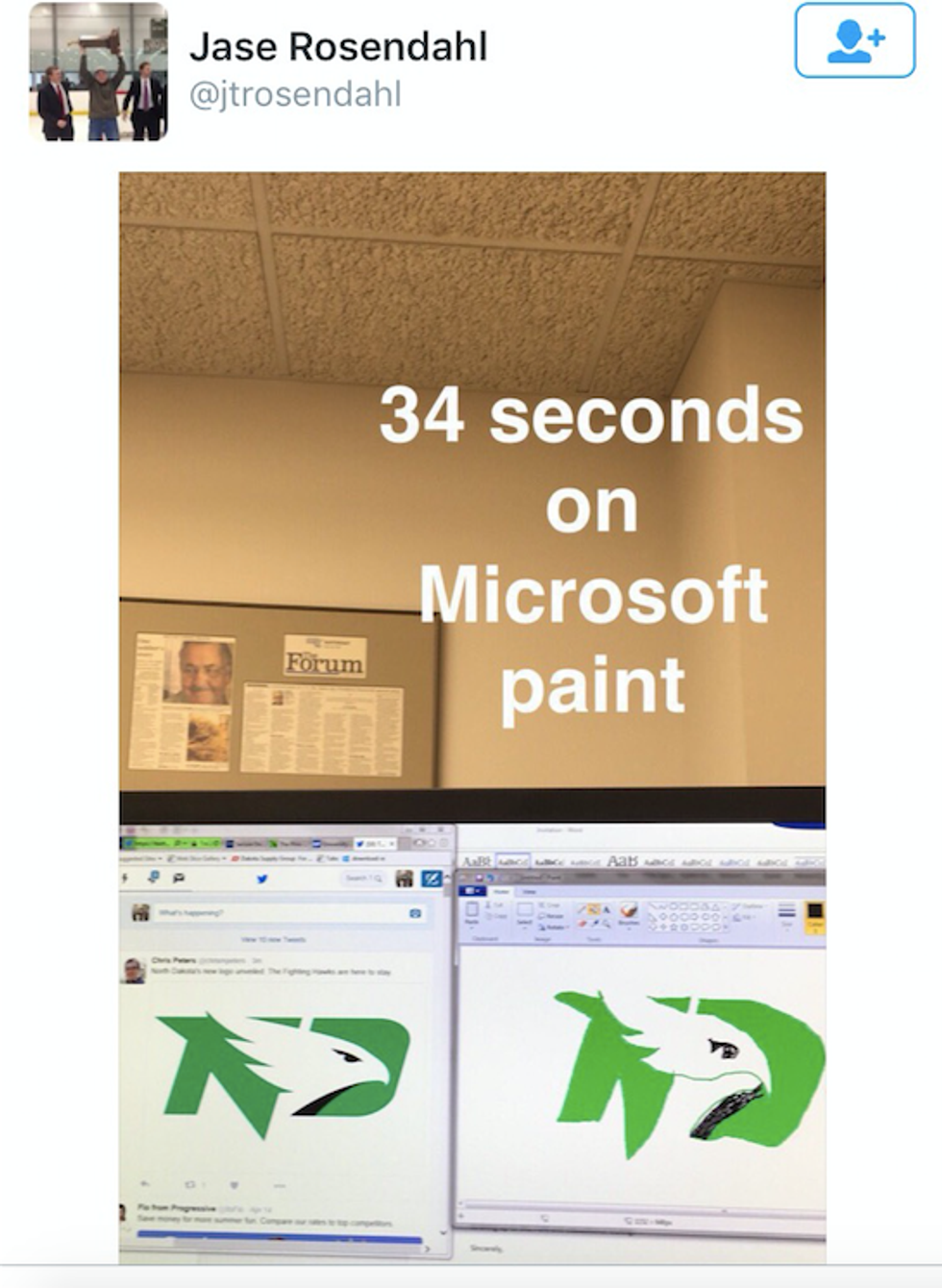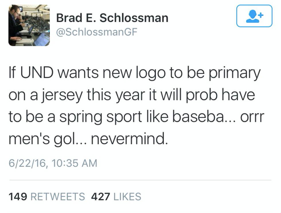 Interim President Ed Schaefer said in a recent interview with WDAZ that he "felt that it was important to have professional logo development people, and branding people, to develop [the logo]. Ya know, not just a local artist." Sorry President Schaefer, but no. Just no. You had an opportunity to include the man who created the iconic, and arguably, best logo in collegiate history in this process and you didn't? I would call that a missed opportunity. I'm glad that you "had a favorite" going into this process, but giving you the power to choose the logo that the University is stuck with for the rest of eternity when you're leaving in a few short months, just doesn't add up. And I know that I'm not the only one thinking it.