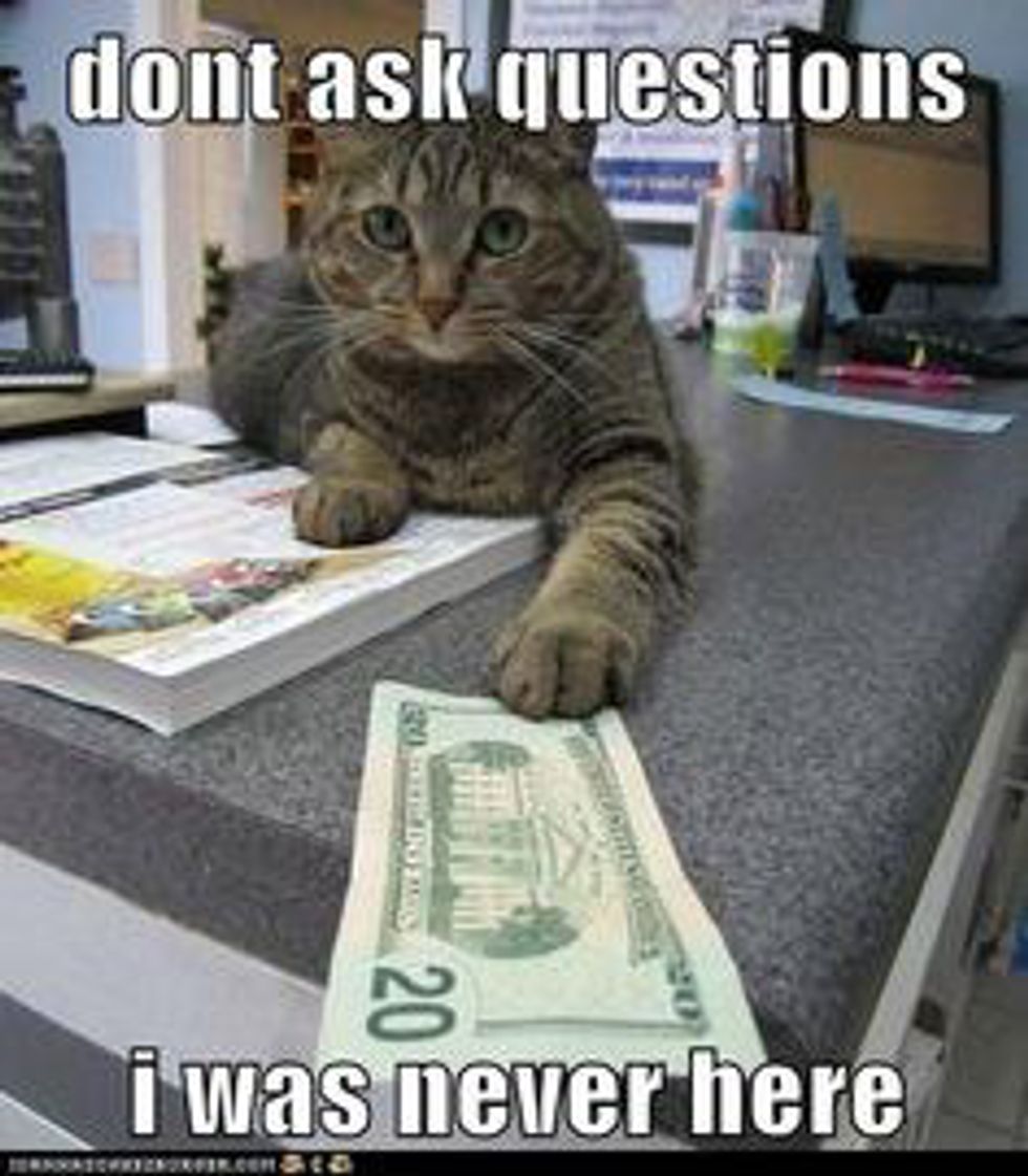 Since the sad eyes and the pouty face never worked, we thought offering some sort of compensation would. Extra money, free food, doing their laundry, etc... something always got them to crack.