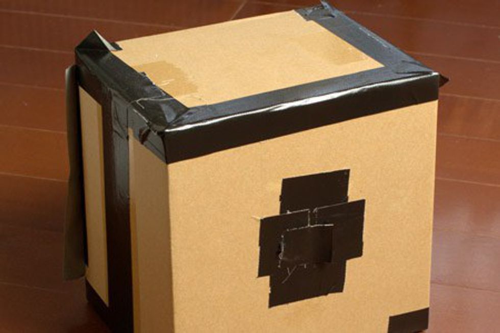 Simply stated, it is a wooden box with some sort of lense (a tiny piece of aluminum with a small hole in the center, about the diameter of the tip of a needle), and a lense cover (a piece of black electrical tape works fine). A piece of light sensitive paper is positioned inside. To capture the image, its lense is left open for a certain amount of time depending on the light exposure during the time and the place the image is captured.