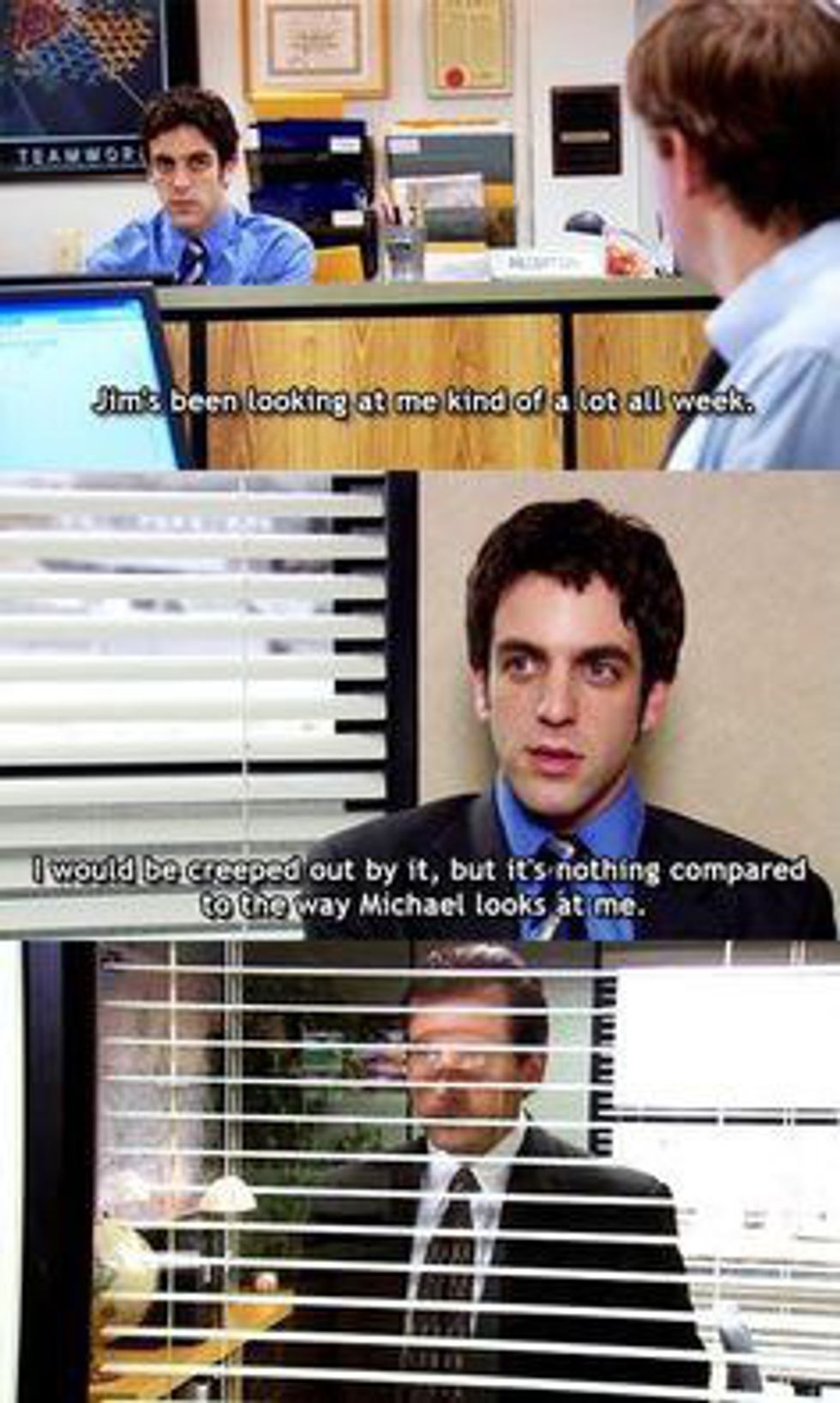 Or what about when Dwight got a concussion and Pam realized Dwight was her friend?