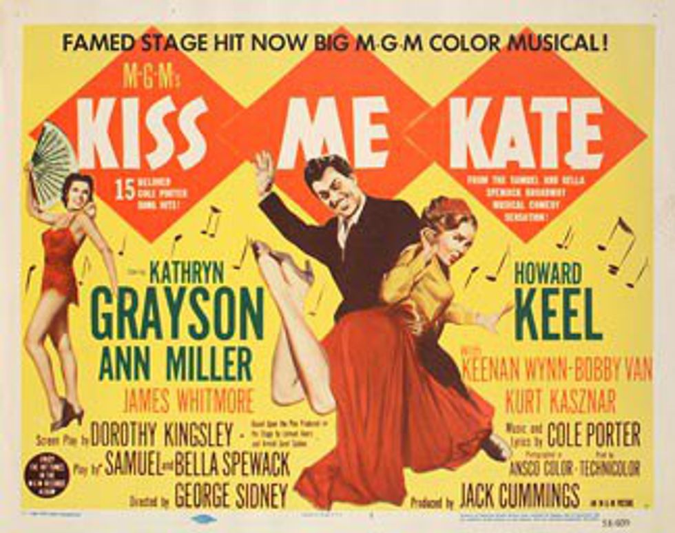 "Kiss Me, Kate" is based on Shakespeare's "Taming of the Shrew", for those who are familiar with it. A play within a play, it switches between the onstage action and the drama of backstage life. There are multiple love stories, gangsters and even a spanking. It's great.