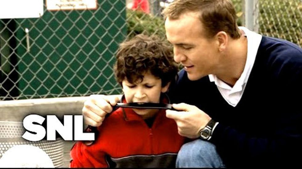 This digital short is a public service announcement for United Way, in which NFL star Peyton Manning volunteers with a youth group, but exhibits poor behavior. Instead of encouraging kids to get involved and be active, Manning treats the football activities as if they were playing a professional game. He also does extra things with the kids, including, but not limited to, teaching them how to break into a car, having a drink with them and forcing one kid to get a tattoo of his face.