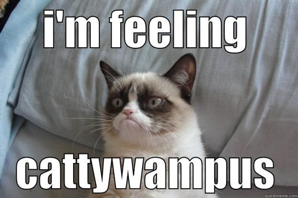 When you are feeling cattywampus, you may feel slightly askew. It can also be applied to objects describing them as not arranged correctly!