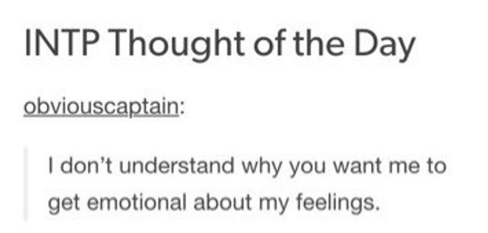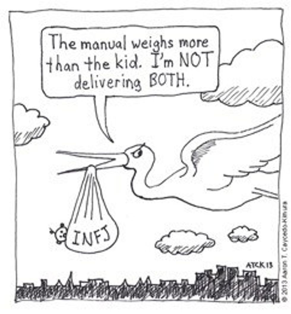 As previously noted, just as someone can push your buttons, surely there are things you do that irritate other types. For example, being the INFJ I am, I’m naturally drawn to conspiracy theories—and I don’t just like them… I obsess over them. With all of the research I accumulate I could go on forever about the things I find. However, some people just want you to get to the damn point so they can get on with their day instead of you telling them about every crisis actor scandal. For real though, that’s creepy stuff and you should really Google it some time.