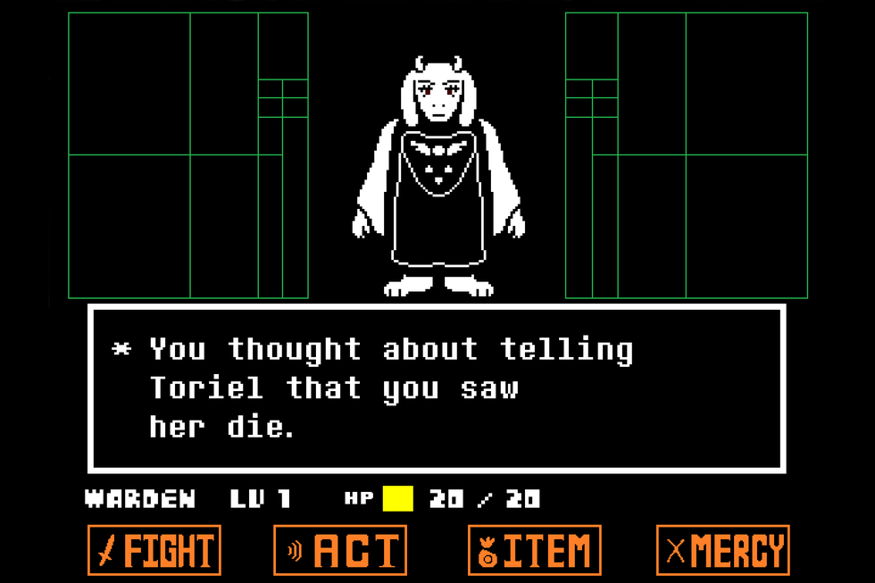 After a point, she tells you to "stay in this room" and wait for her to come back. Anyone who's played a more traditional RPG knows this is the time you actually begin your adventure and start playing the game. Undertale's combat mechanics are very unique, and deserve to be mentioned.