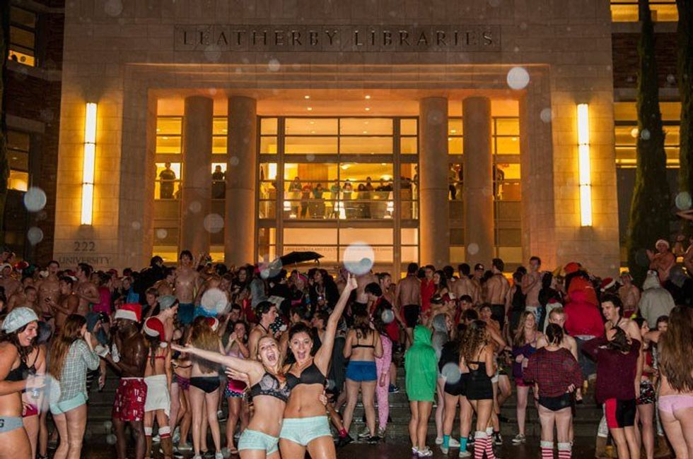 Now that classes have come to an end and finals are approaching, we all know what that means… Undie Run! Here at Chapman University and most likely other college campuses, the Undie Run often serves as a fun activity to celebrate the end of the year and take the stress off of finals. I would say I kind of participated last semester. As Orange was freezing over at a whopping 41 degrees that night, I decided not to do the whole underwear thing, so I wore a onesie. After all, you can never go wrong with a onesie. I saw many other students dressed just like me, as well as many dressed in underwear. Regardless, I had so much fun with my friends and I am really excited to do it again.