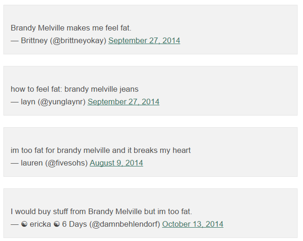 Brandy Melville’s “cool girl clothes” are extremely exclusionary and many shoppers cannot buy their products because of sizing. Below are just a few comments of outrage about the company: