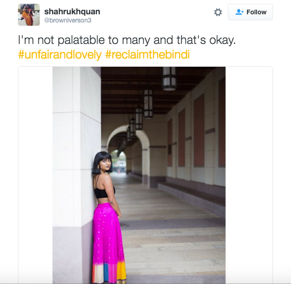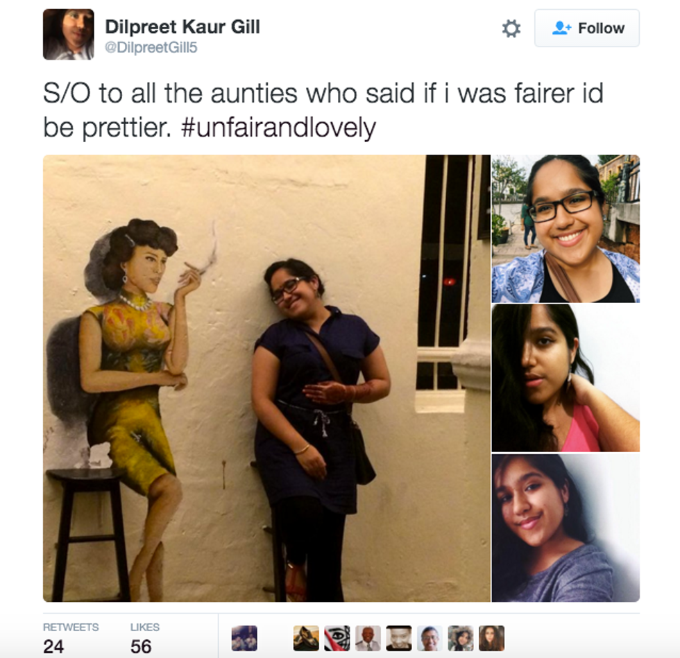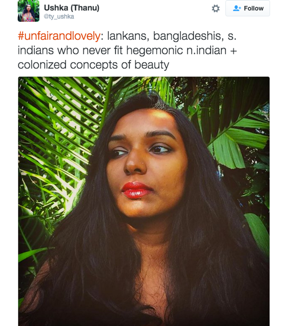The campaign—which takes its name from an incredibly popular skin and socially harmful whitening cream called Fair & Lovely—is for all people of color who have been marginalized for having dark skin. “#UnfairAndLovely is meant to be an inclusive space.