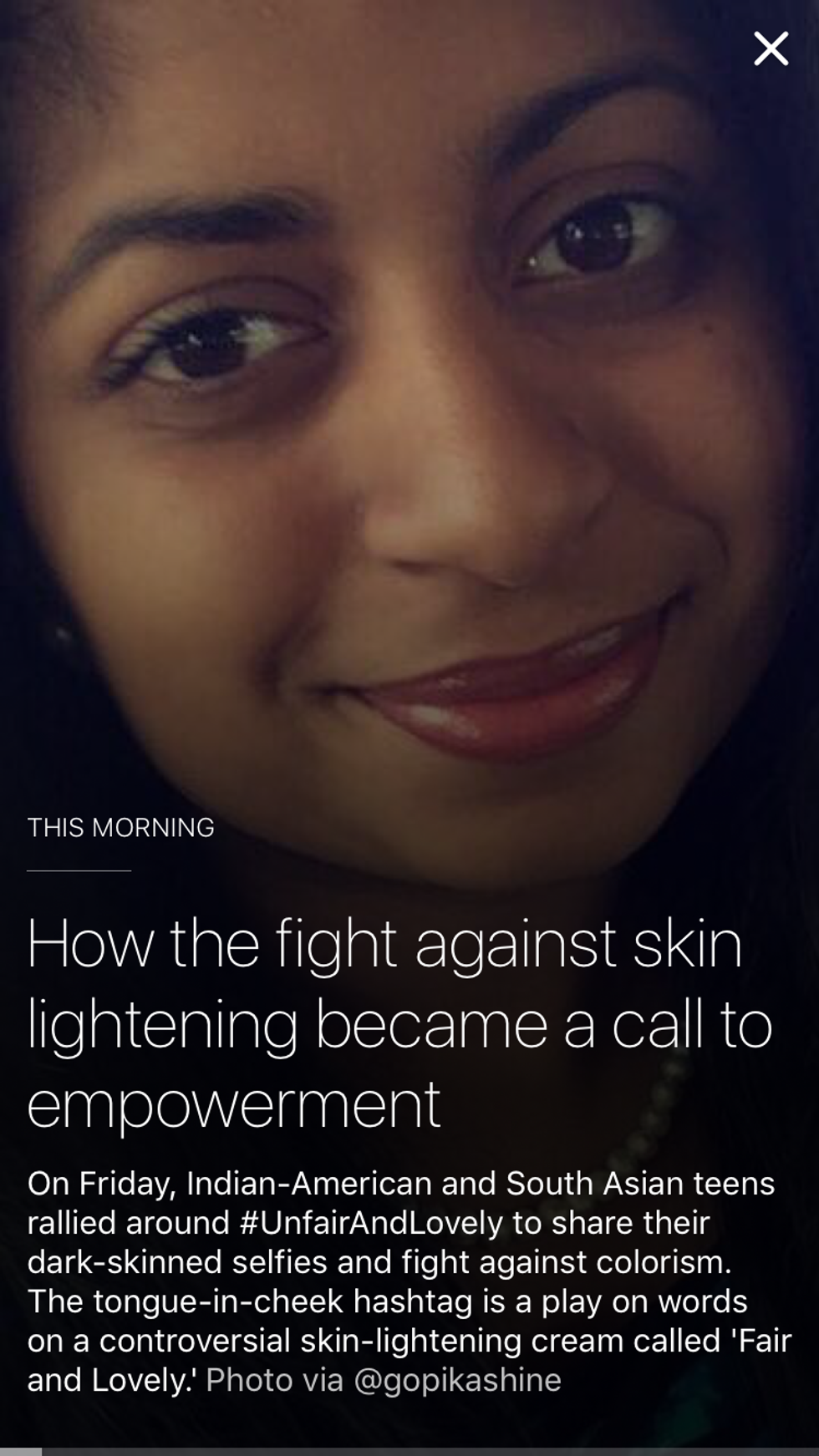 The commercials for the [Fair & Lovely] products are darker women (they usually are not dark) who then use the cream and become very, very light. This lighter skin solves their issue of not having a partner in the commercials, or finding love. These commercials are permeated throughout South Asia, and tends for adults to associate beauty and confidence with lighter skinned folk of all genders.We grew to acknowledge that activists within Black and South Asian communities who addressed the issues of racism, sexism, etc. tend to have light skinned privilege. We also just encountered colorism on an everyday basis—within and outside of our communities has the biggest skin lightening industry in the world.
