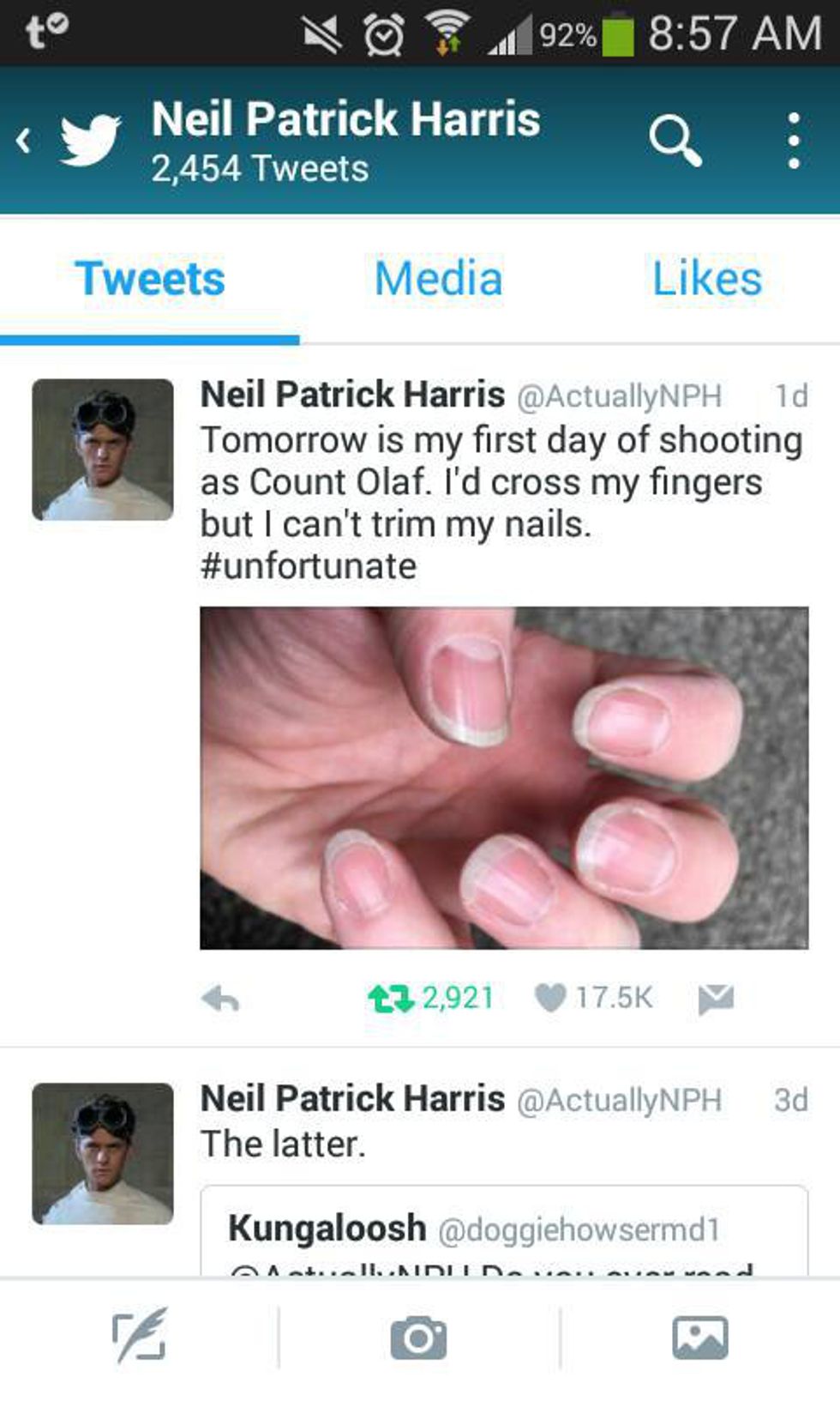 For the Netflix series, Sonnenfield is back on the project as director. And, while the project's showrunner has left, everything still seems to be on track. Neil Patrick Harris, cast as the infamous Count Olaf even tweeted about the beginning of filming. Harris will be living in Vancouver over the next few months while filming. Meanwhile, Malina Weismann and Louis Hynes, cast to play the two eldest Baudelaires, haven't made any direct comment about the start of filming but it is clear that they have arrived in Vancouver as well. As far as the Netflix series "A Series of Unfortunate Events" goes, things are looking very fortunate.