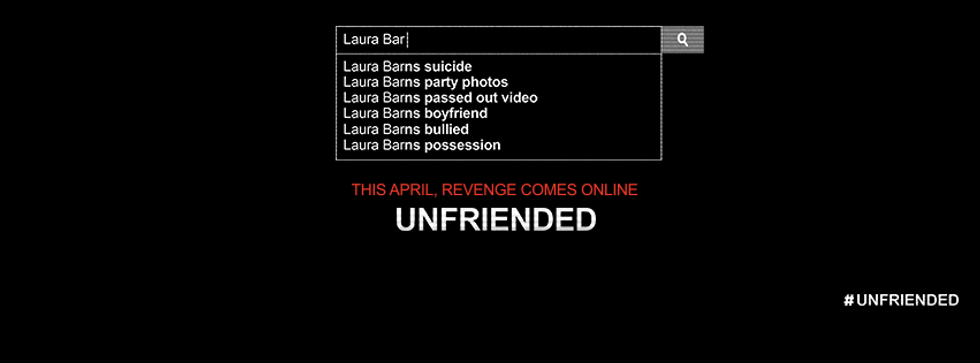 Unfriended presents a story where six friends are haunted by the spirit of a dead classmate via Skype. Throughout the night, they are mercilessly terrorized and threatened to be killed if any of them is to log off. The only way out is if one of them reveals a terrible secret.