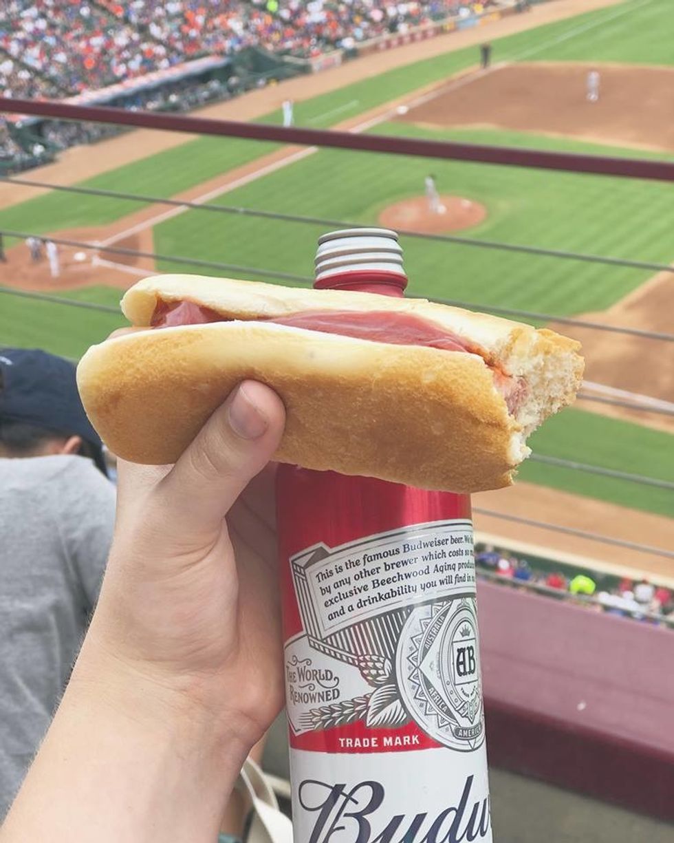 Quite honestly one of the most looked over dates people don't think about. You would be surprised by how cheap some of these games go for. I do advise that you eat before though due to the fact that the food is pricey unless you plan for what game you wanna go to. Make sure to see what dates they have $1 dollar hot dog day (5 hotdogs per person limit) but get them right before the game starts so you won't have to miss the game waiting in a long line. You can get cute photos at any location there either in your seats or in front of the TE_AS sign where y'all can try to make a X with your cute selves. Go Rangers!