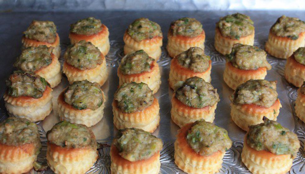 Also known as an "erster" patty, this pastry filled with creamy oyster goodness is a common starter that is constantly moving out of the oven and straight to the party platter that family will continue to nosh on until the official dinner time has started. Sometimes it is bite-sized, and sometimes it can be served almost like a starter soup in a small bread bowl. An easy recipe can be found here.