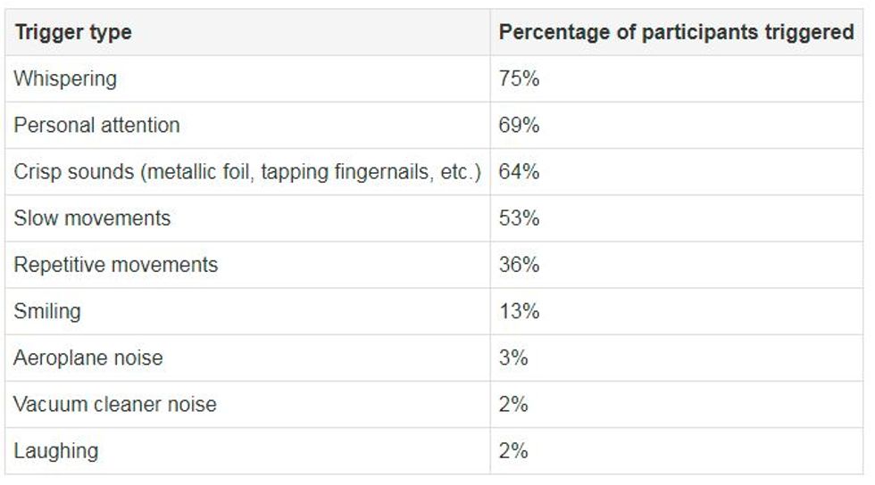 Certain sounds work for me that other people don't enjoy as much. I love the sound of vacuum cleaners as well as slow, repetitive movements, like someone brushing and playing with another person's hair. I find that I don't enjoy whispering videos a lot of the time, though whispering makes up 75 percent of people's ASMR triggers (i.e. the tingles) as reported in the first formal study of ASMR.
