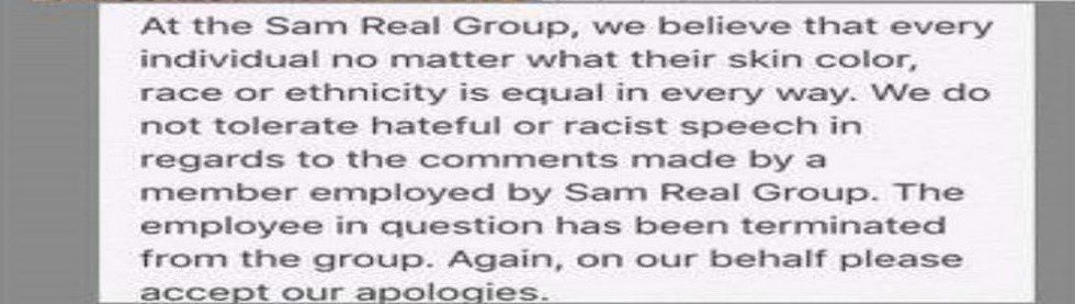 Who would want someone with so much hatred in their heart to serve them? Exactly. Only place I would go where someone says mean things about me is Weiner’s Circle. Thanks to Facebook, we can now target these pin-brained people and tag their employer. If you hate me that much, I don’t want you having my money. Same Real Group, a real estate company, made a prime example of a lady who ranted on Facebook posting ignorant comments about another race.