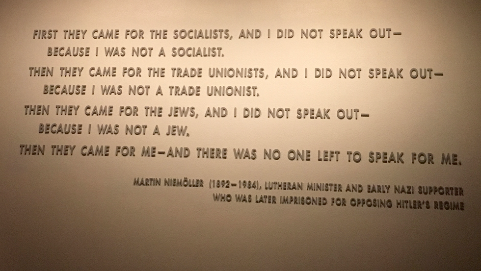 This is a quote found at the end of the Holocaust museum's main four-story exhibit. It is so powerful, and we must remember its message.