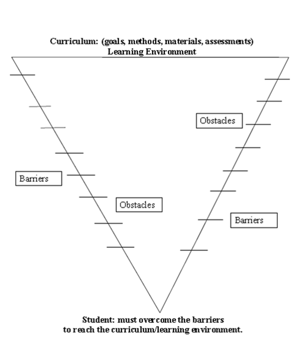 Universally Designed Learning Environments takes the burden off the student to overcome barriers and obstacles and places it squarely on the curriculum and learning environment to come up and meet the needs of the students.