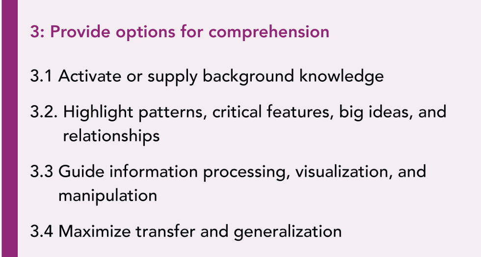 This moves us into the What, How, and Why of guideline three: options for comprehension.