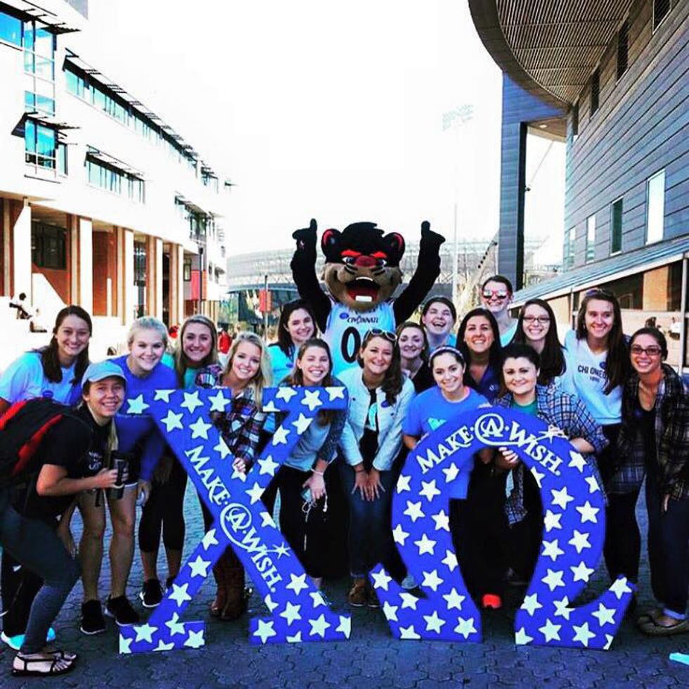 Chi Omega's national philanthropy is the Make-A-Wish foundation. Pi Alpha has a goal each year of raising more than $8,000 to grant a wish for a child with a terminal illness. They are proud to say they have been able to accomplish this goal the past three years in a row, which is a first for their chapter! To accomplish this goal, they have several fundraisers like Wish Week in the fall and Chi O Karaoke in the spring.