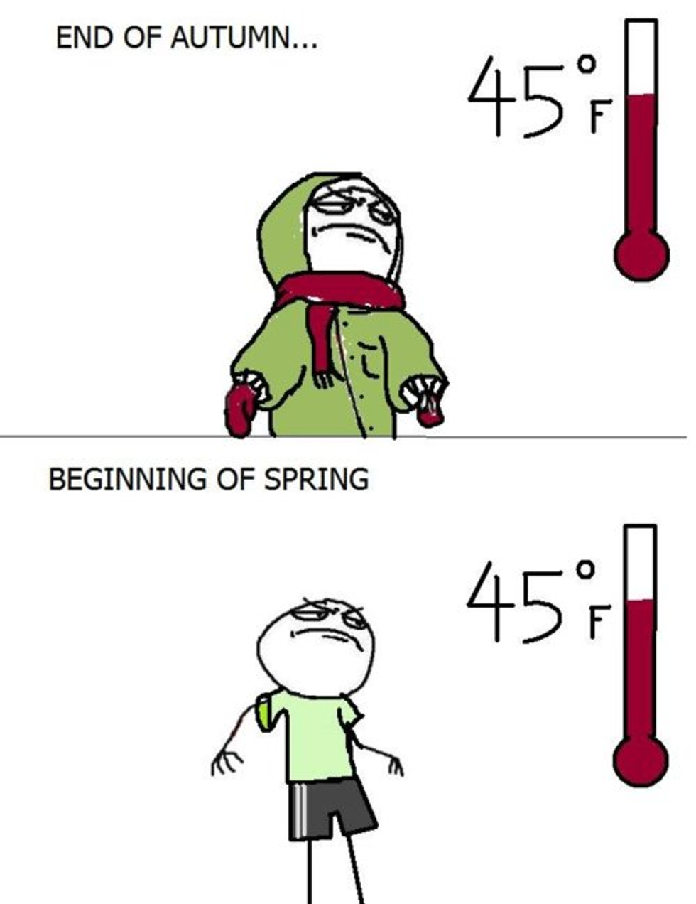 Even our beverage choices change. Instead of a hot cup of coffee to warm us up, we need iced coffee as a refresher.