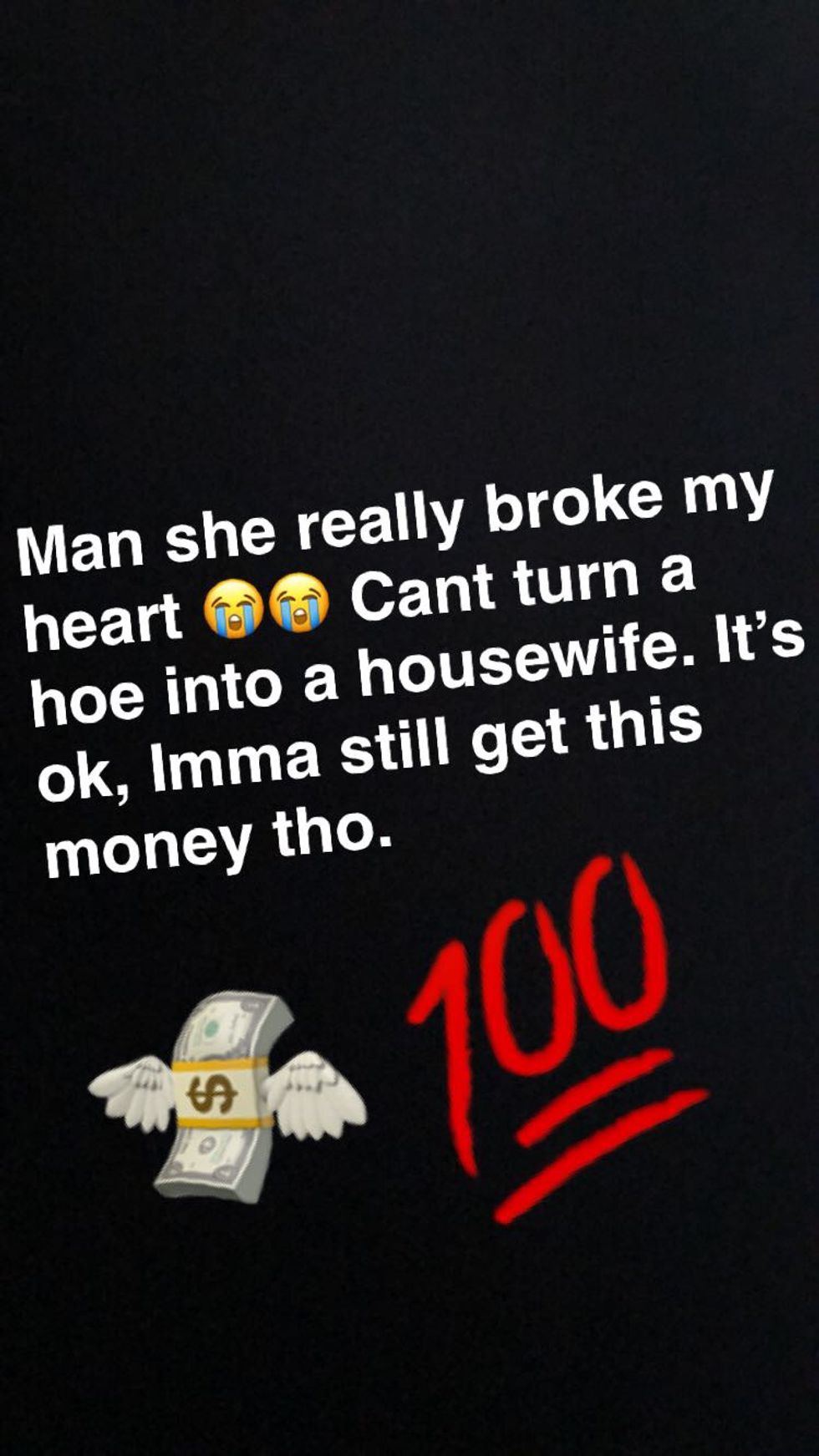I don’t care what I’m going through in life or how upset I am…I will never post a Snapchat story with a black background and big text talking about my feelings.