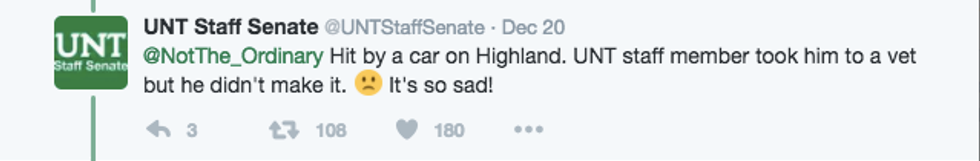 For more news on Lucky's memorial service, follow @UNTStaffSenate on twitter.