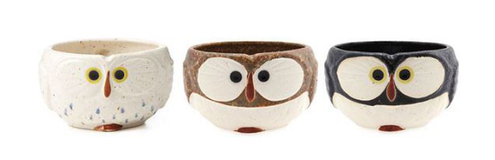 These hand painted stoneware mugs are sure to bring a smile to lovers of owls and coffee. So cute!