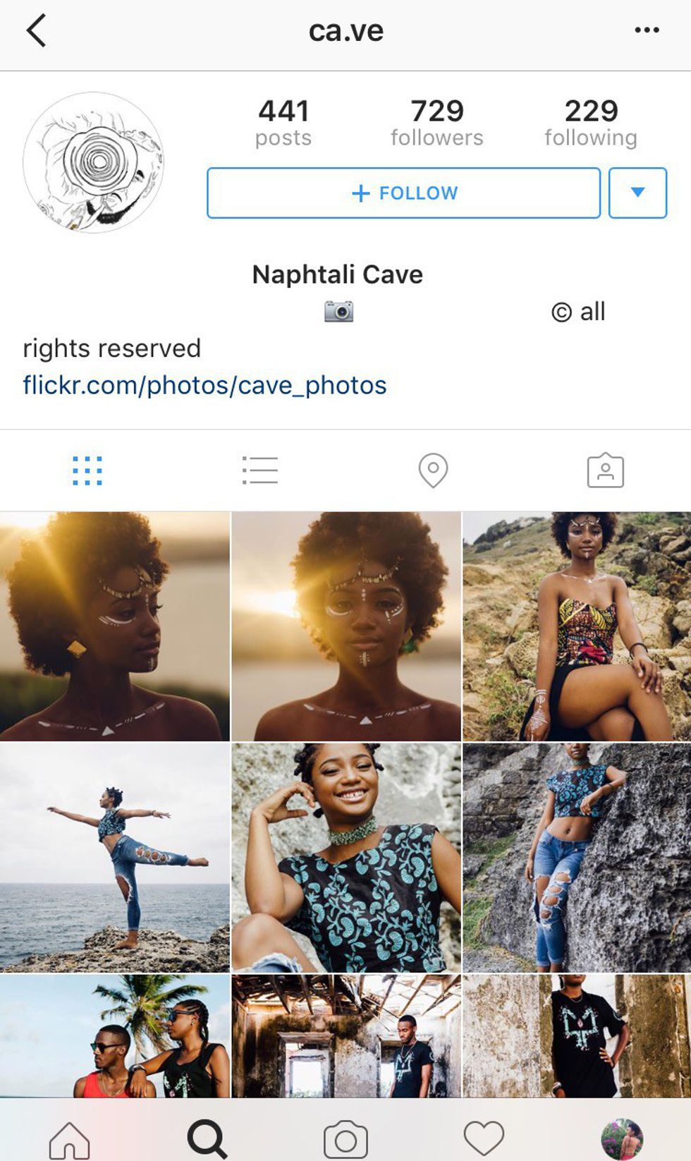 Cave's photographs are so intensely detailed that I found myself picturing many of them blown up and hung in frames around my house. That's pretty impressive to me. He incorporates unconventional landscapes, or places where the average person would not see the beauty in. He makes places beautiful through his photographs. What really drew me to Cave's profile though, was his Black History Month series. In the month of February of this hair, he showcased many black Barbadians with the symbolic black power fist in black and white, which made for more simple, yet breathtaking shots. These photos were also accompanied by quotes from the subjects which I thought was a beautiful touch.