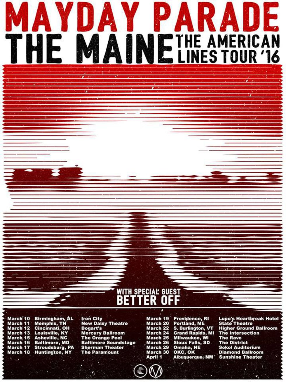 With Panic! at the Disco’s new album, Death of a Bachelor, and Weezer’s upcoming album, there will be plenty of new music to celebrate. Although we don’t know what Weezer’s vibe will be in their new album, we know that Panic! will be bringing energy and backflips to the stage.3. The Maine and Mayday Parade - American Lines Tour '16