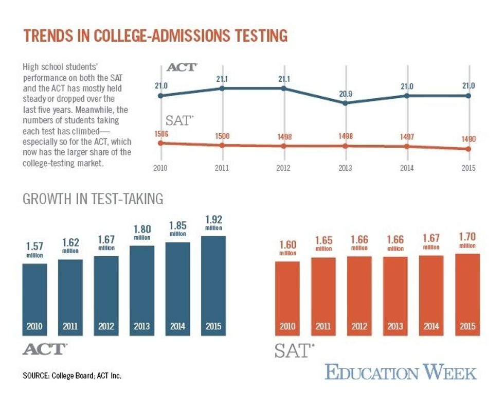 Many students aren't fully prepared for the SATs and ACTs. And according to the College Board and Huffington Post from 2005 – 2015 the SAT scores appeared stagnant as there's been no increase in scores.