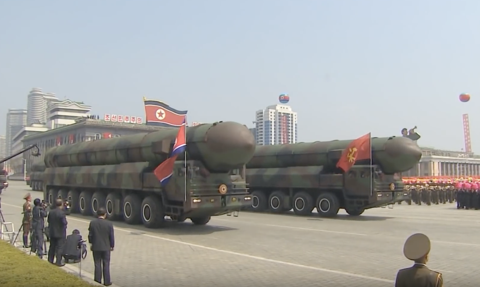 Weapons on display in a parade in the North Korean capital of Pyongyang.