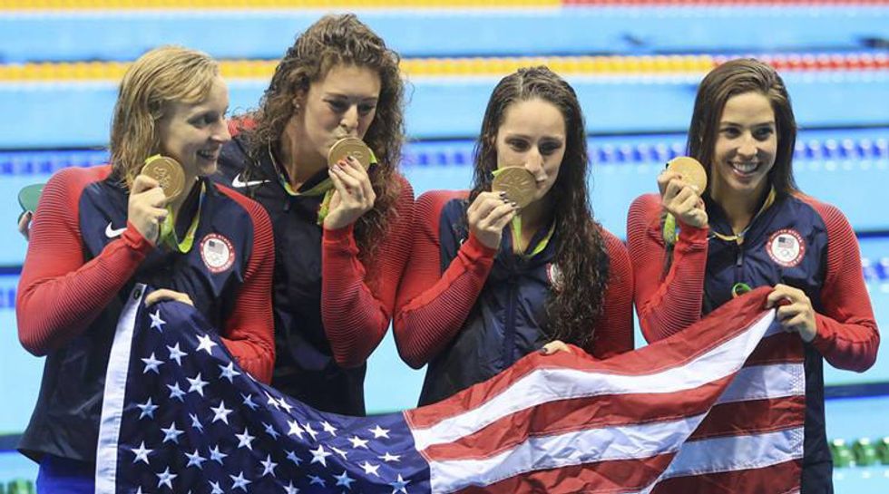 The Women's 4x200m Freestyle Relay once again beat out Australia for the gold as they did in the 2012 London Olympics. Former Georgia Bulldog Allison Schmitt is the only member of the relay team from 2012. Other members of the relay included Leah Smith, Maya DiRado and Katie Ledecky, who was the anchor and solidified USA's gold medal. These girls were on fire; plus look how cute they look with their gold medals and matching manis.