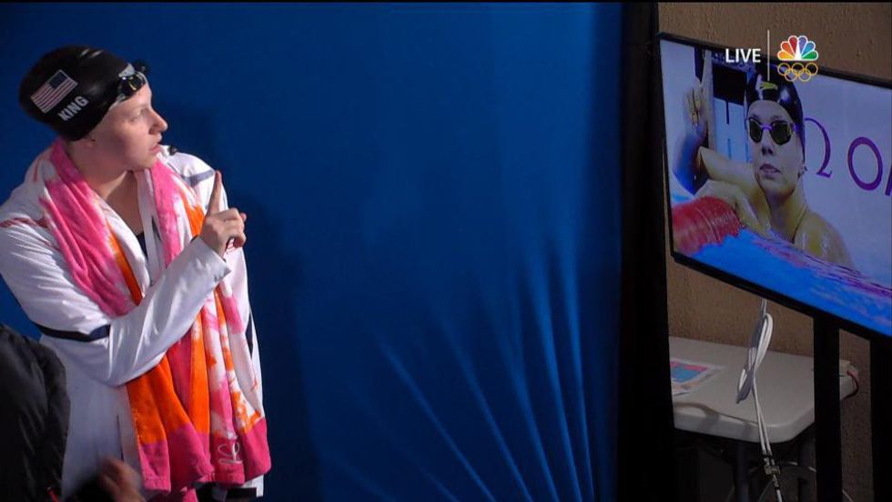 When Lilly King finger wagged back at Russia's Yulia Efimova, America simultaneously said: "OOOOOOOOOOOOO!" Efimova waved her No. finger after finishing her race in the semifinal, to which King responded with her own finger wag. After being asked if she thought that her finger wag made a statement that night, King proudly explained that she isn't a force to be reckoned with and that she "isn't a fan" of Efimova because of her doping scandal. Another story on the street is that the drug Efimova was using was previously legal in Russia and only recently was ruled out. Already being a boss for her sassy comeback, King crushed Efimova in the Women's 100m Breaststroke and set the Olympic Record of 1:04.93.