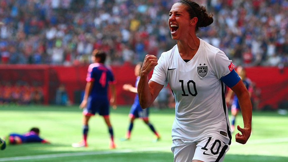 More than 53,000 fans filled the BC Place stadium in Vancouver, Canada. It was evident that the 14 U.S. players and substitutes that took the pitch fed off of the crowd's energy and perfectly executed the game. If you don't already know the name Carli Lloyd, memorize it. Meet this generation's Mia Hamm. Not only did this midfielder make history after scoring a hat-trick (three goals in one game) in yesterday's final in less than 16 minutes, she also scored two penalty kicks against China and Germany earlier in the tournament, helping the U.S. reach the final. Fox sports reporter asked USWNT forward Abby Wambach to reflect on Lloyd's performance and she described it in one word: "ridiculous."