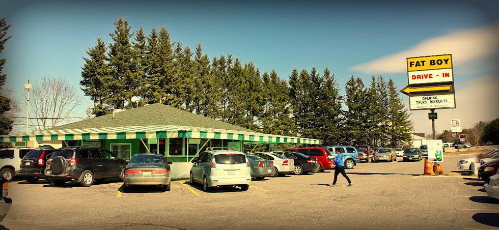 Fat Boys is located in Brunswick, Maine and is a great spot to experience a 50's style restaurant. Pull up in your car and the servers come right to your window to take your order and deliver your food.