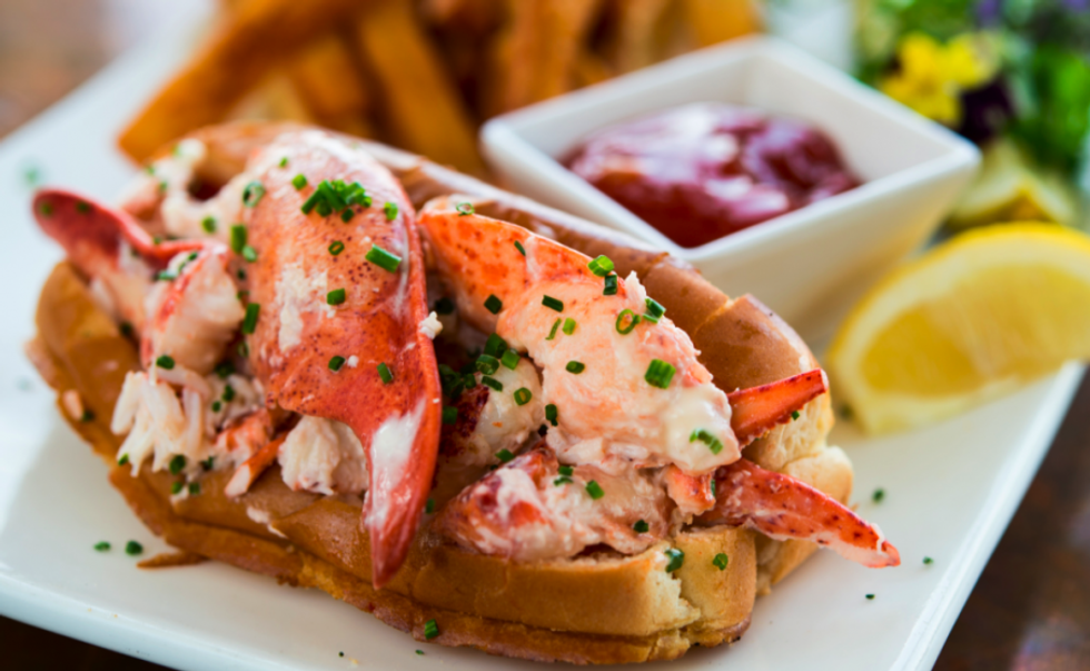 Maine is known for their lobster and a lobster roll is a great way of getting your lobster "fix" because there's no mess to it. A lobster roll is made on a toasted hot dog roll with a bed of lettuce and chunks of large lobster meat mixed with light mayo on top. Some of the best lobster rolls can be found at any restaurant along the ocean.